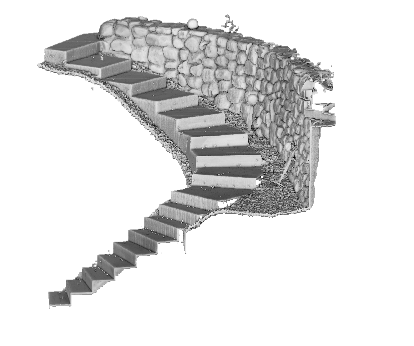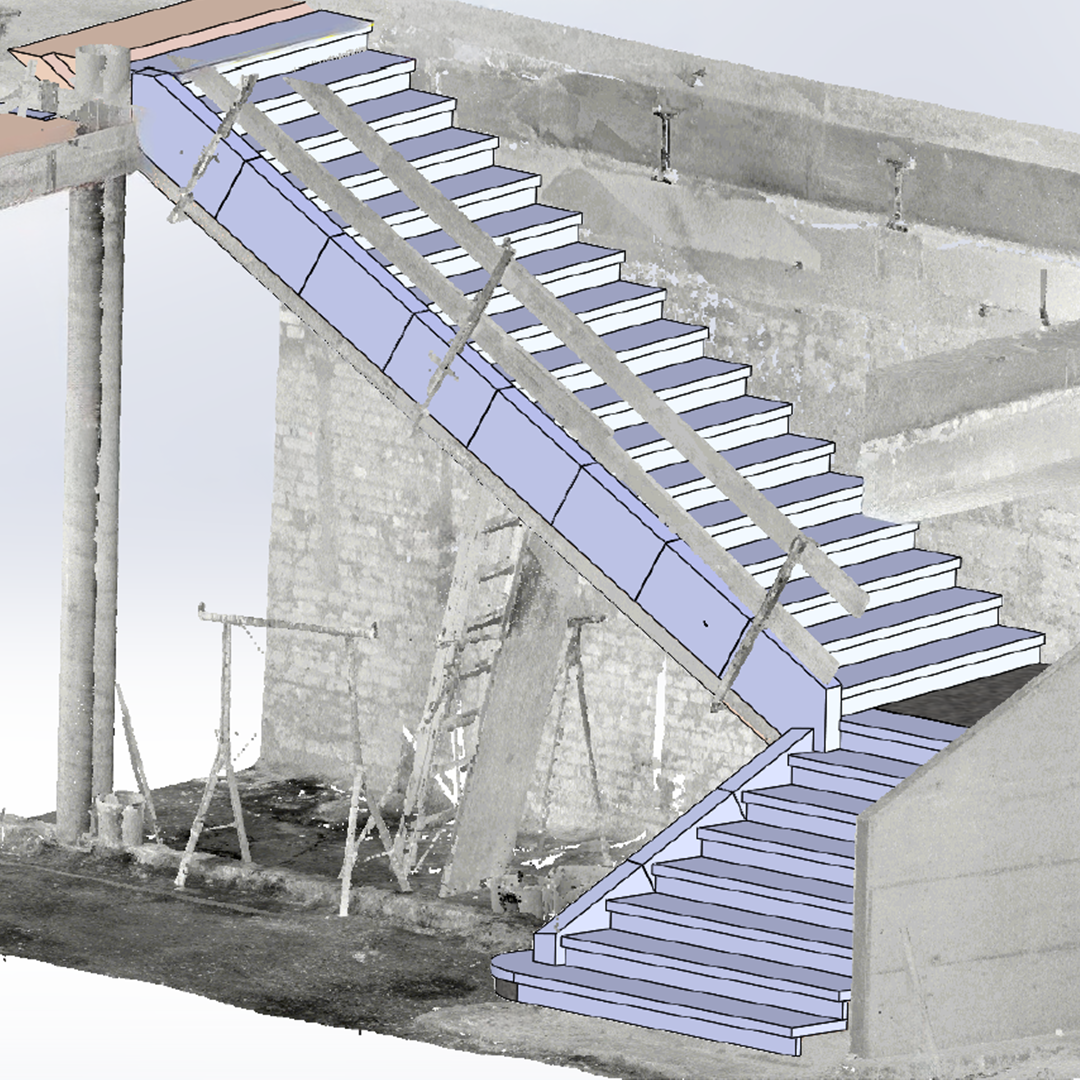 Ziel des Projekts war die Planung einer Granitstiege inklusive Steinmetzdetails und individuell angefertigtem Stahlgeländer. Grundlage dafür bildete eine präzise 3D-Punktwolke, die mittels Laserscanning erstellt wurde, um die örtlichen Gegebenheiten exakt zu erfassen. Die gewonnenen Daten ermöglichten eine detailgenaue Planung und passgenaue Umsetzung ohne nachträgliche Anpassungen auf der Baustelle.