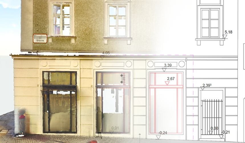 Die bestehende Fenstergeometrie und Fassadenstruktur sollte mittels 3D-Laserscanning in diesem denkmalgeschützten Gebäude exakt erfasst werden, um den Zustand der Kastenfenster präzise zu dokumentieren. Diese Technologie ermöglichte eine detailgetreue Abbildung der Fenster und ihres Einbaus, sodass eine mögliche energetische Sanierung der historischen Fenster mit höchster Genauigkeit und ohne Beeinträchtigung der Bausubstanz geplant werden kann. Auf diese Weise bleiben die denkmalgeschützten Elemente erhalten und können zugleich modernisiert werden.