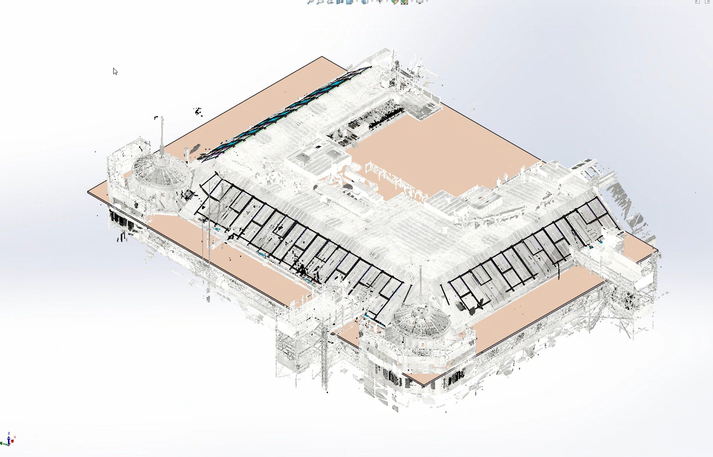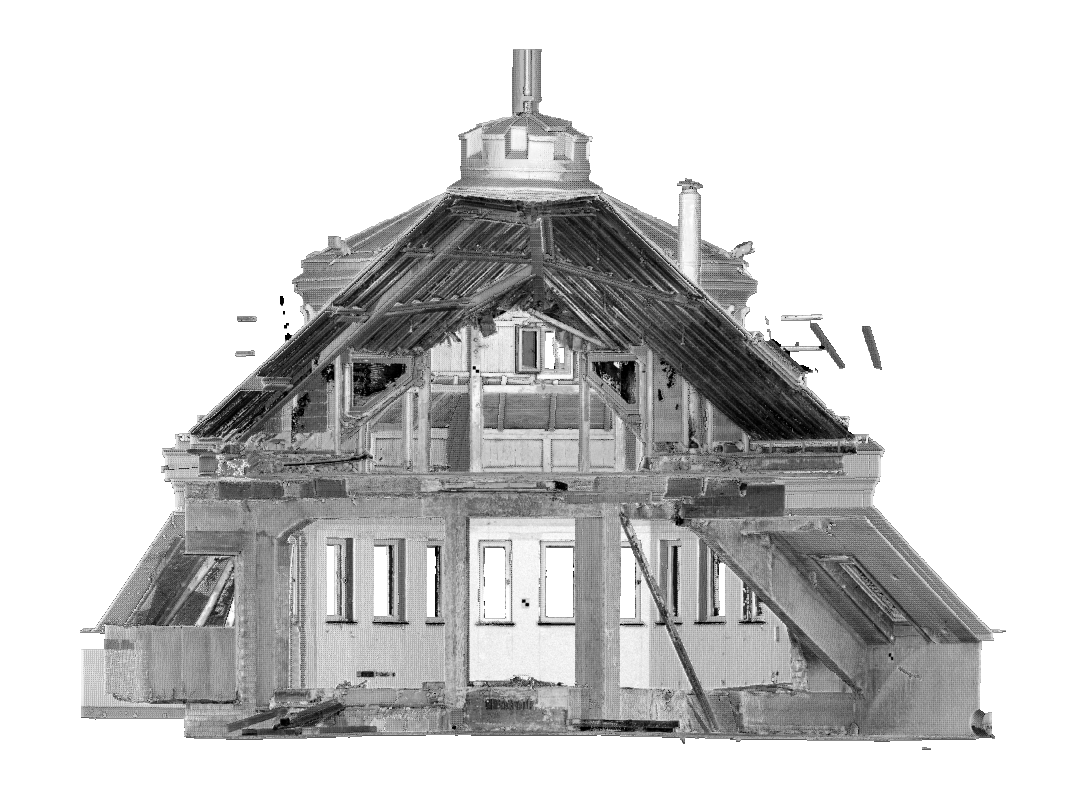 Im Zuge der Renovierung des denkmalgeschützten Hotel Bristol in Wien wurde das gesamte Dachgeschoss mittels hochauflösendem 3D-Laserscanning erfasst. Ziel war eine präzise Bestandsdokumentation als belastbare Grundlage für die Planung der neuen Dachkonstruktion. Die erzeugte Punktwolke erlaubt die detaillierte Analyse vorhandener Strukturen, die Ableitung verformungsgerechter Schnitte und Grundrisse sowie die Kollisionsprüfung zwischen Bestand und geplanter Ausführung – unter besonderer Berücksichtigung der Anforderungen des Denkmalschutzes.