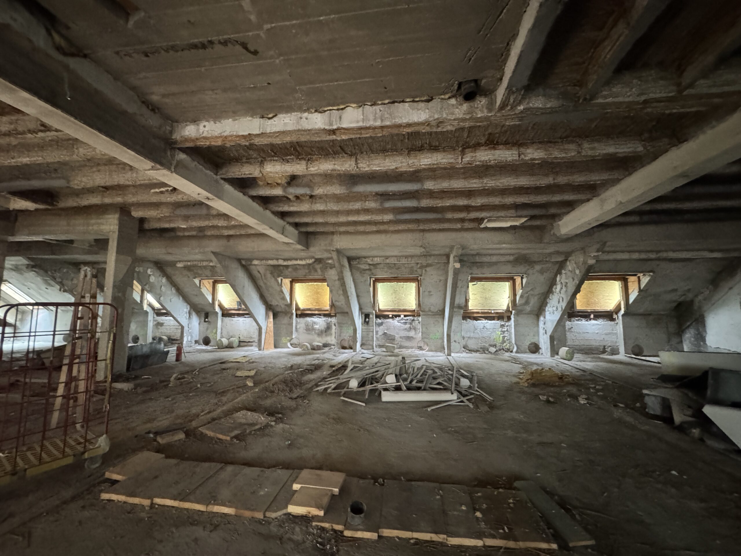 Besondere Anforderung war die Einbindung der beiden in den Eckbereichen vorhandenen und im Bestand verbleibenden Türme in die neue, vollverglaste Dachkonstruktion mit insgesamt 22 als Schiebefenster ausgeführten Dachfenstern.